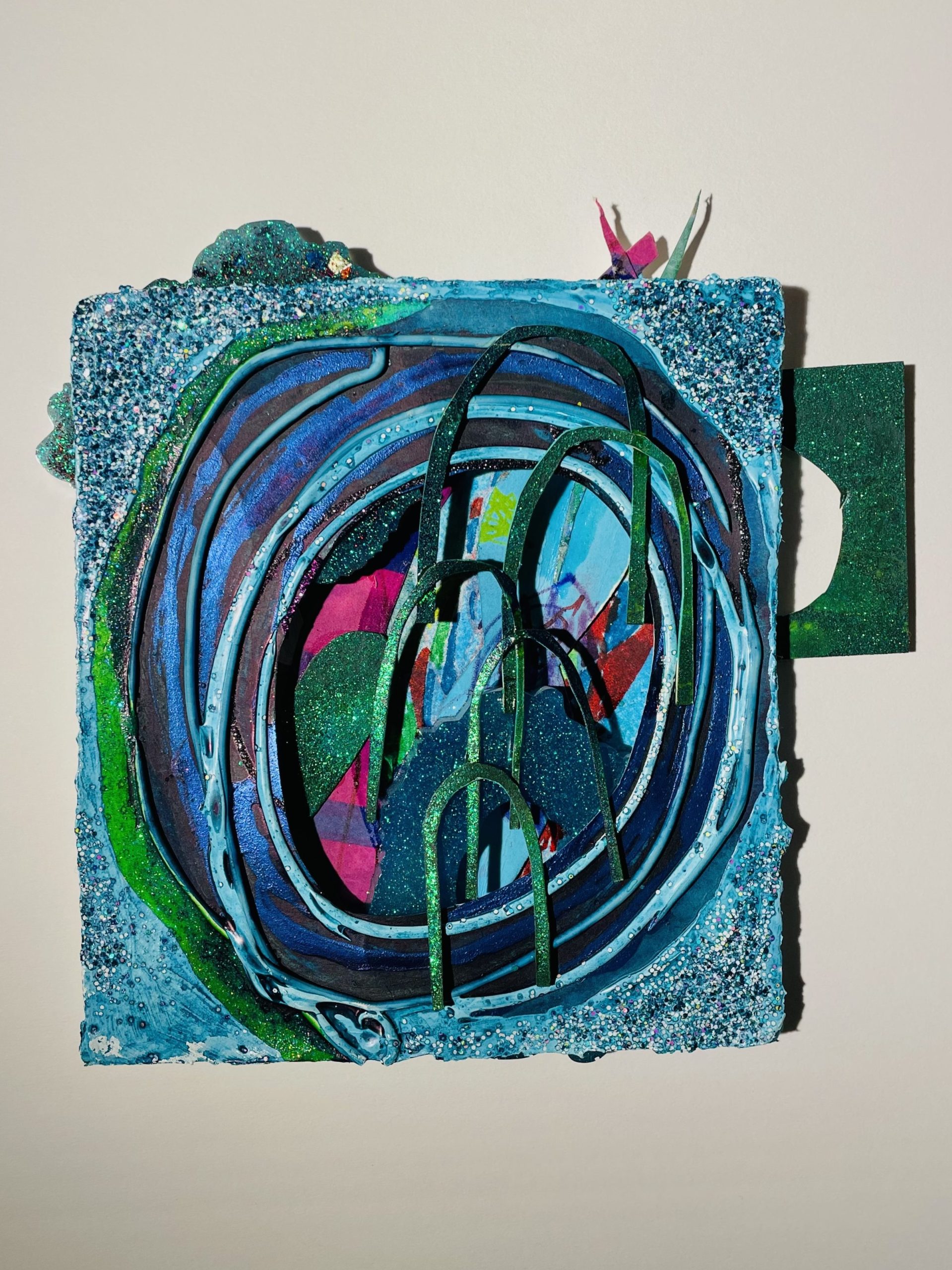 Step into a world of emotion, memory, and magic in Portals, the newest exhibition by artist and educator Kate Frazer Rego, on view at the Groundwork Gallery through the end of June. With an intuitive, playful approach to materials that are “messy, drippy, goopy,” Kate invites us into the quietest parts of the self, where vulnerability and strength meet in vivid color and texture.